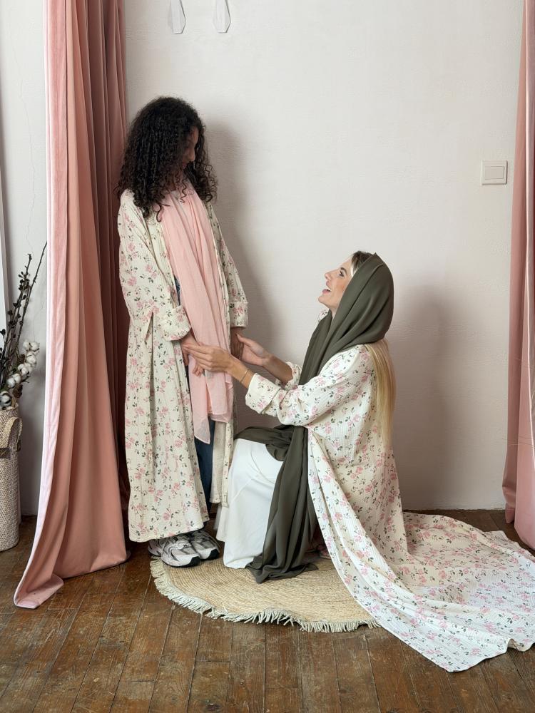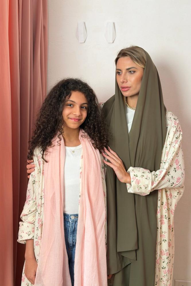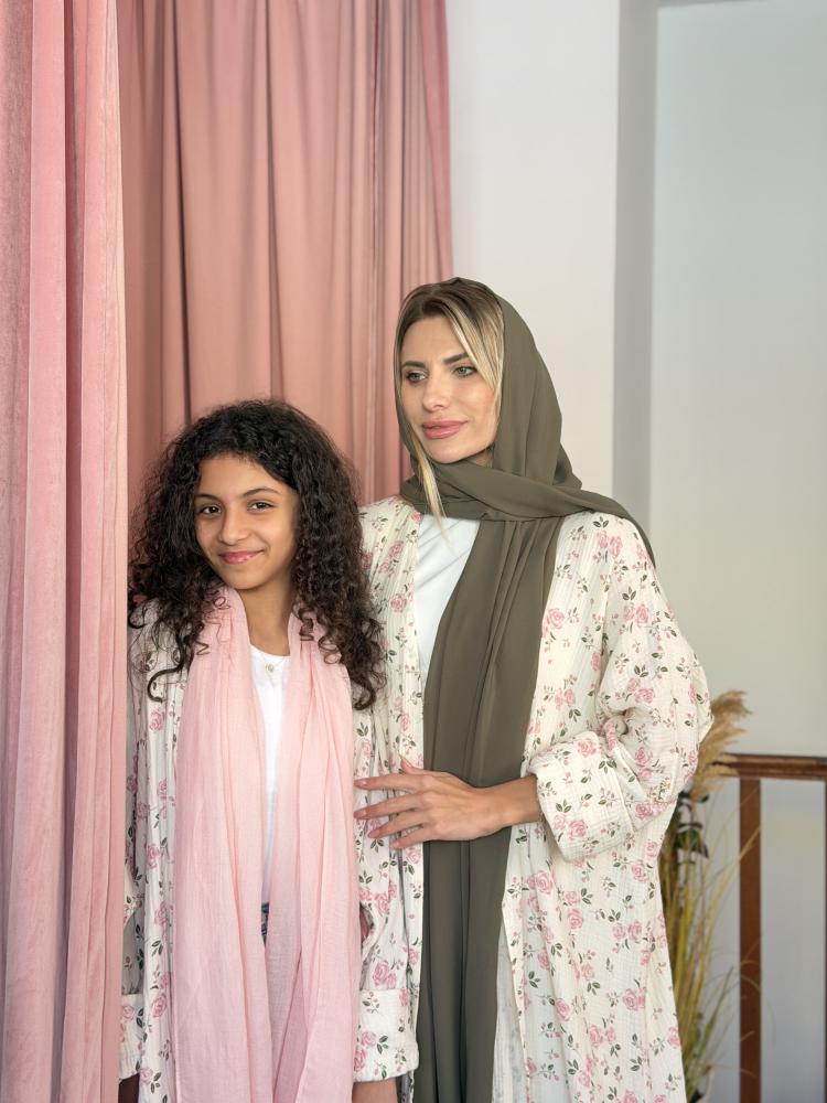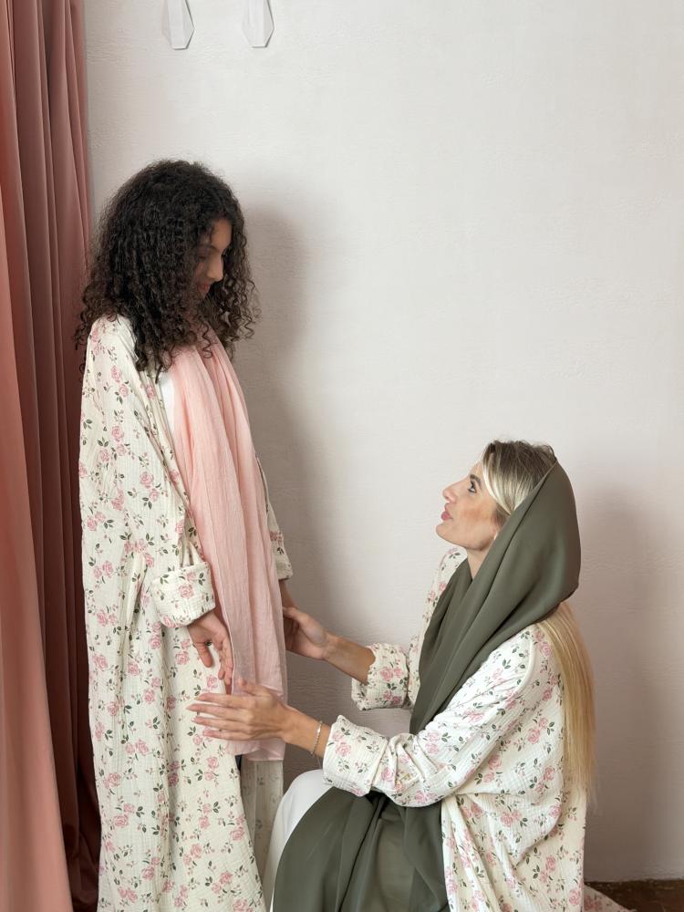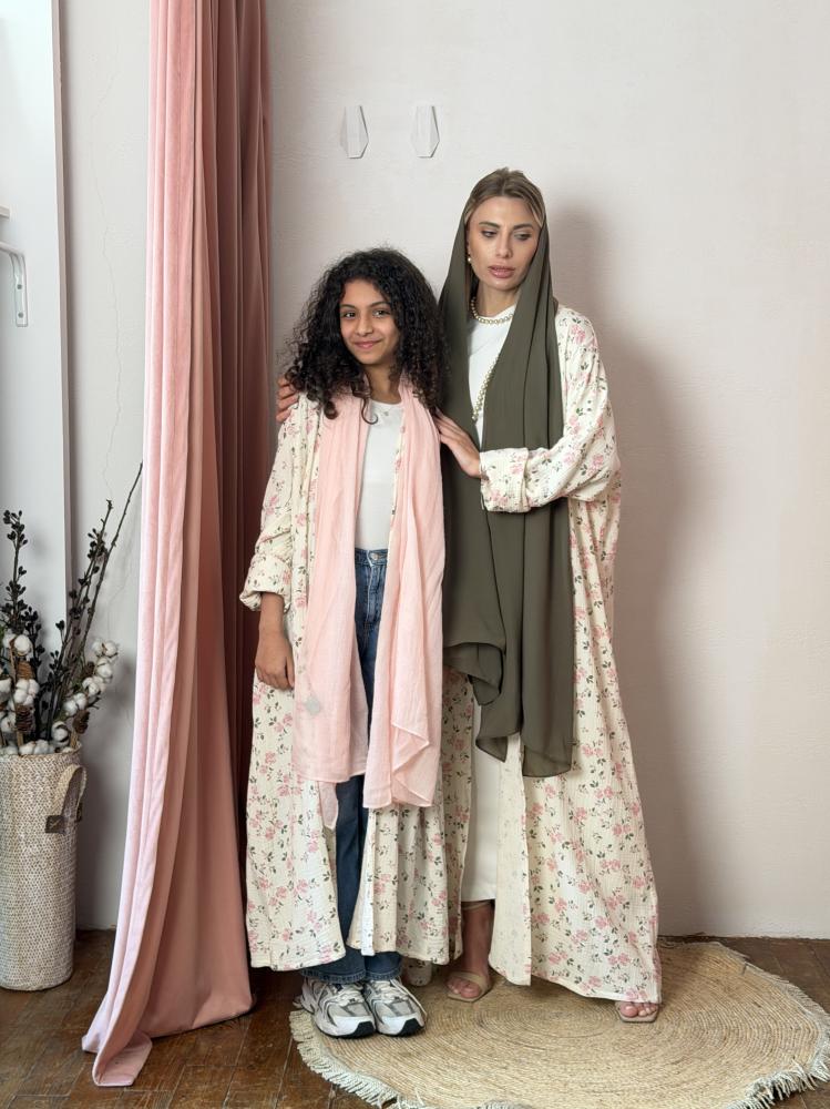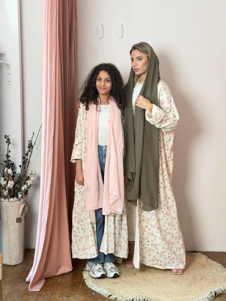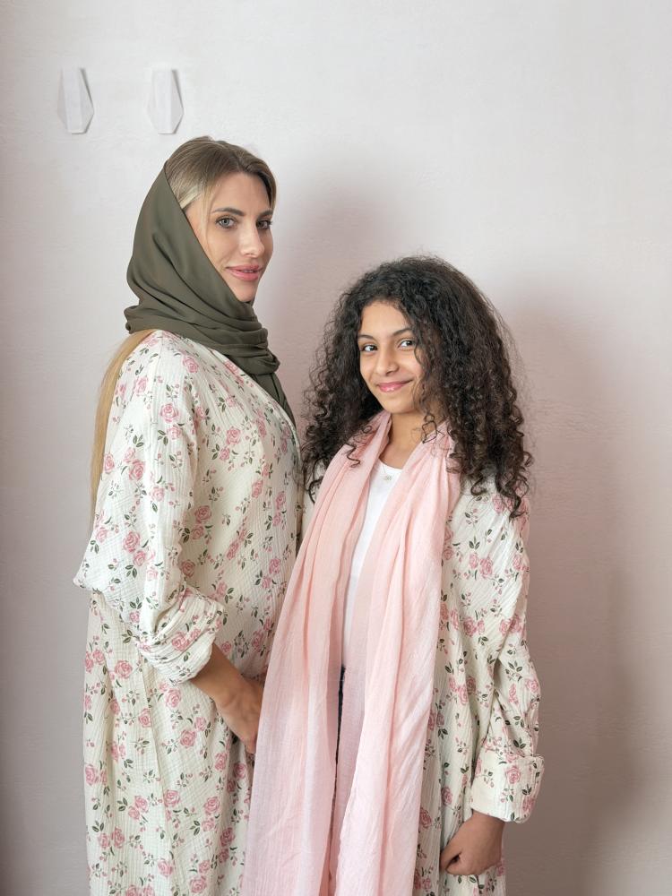 طقم عباية للأم والبنت Mommy & Me - مشجر ورد وردي