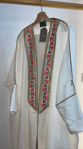 عباية بشت بتطريز أمامي- أبيض