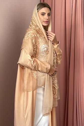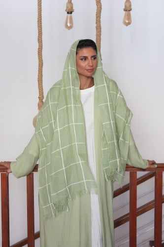 عباية بليند بأكمام وطرحة مشجرة -أخضر