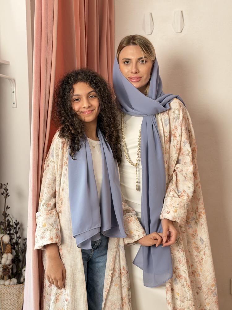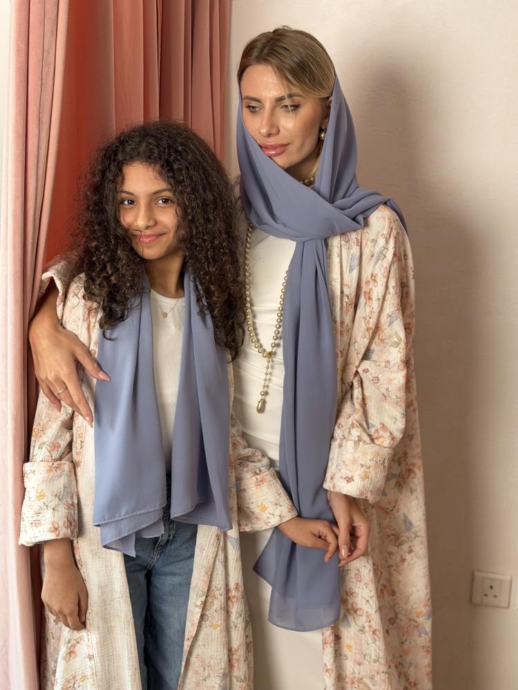 طقم عباية للأم والبنت Mommy & Me - ورد ازرق