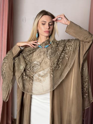 عباية شيفون مورد مطرز - أخضر تيفاني