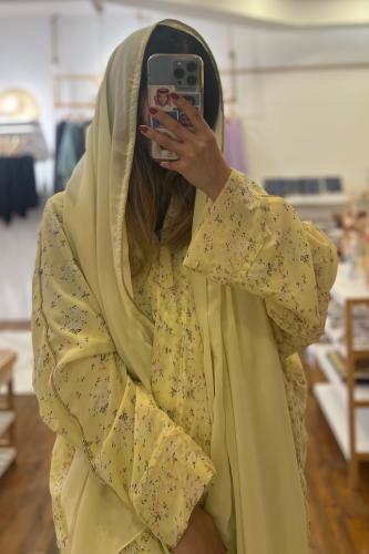 عباية كوبرو طرحة حرير مطرزة ورد - تفاحي