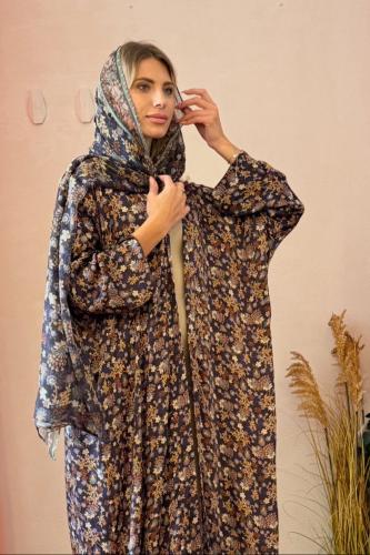 عباية حرير بأكمام واسعة مطرزة