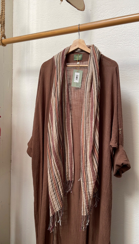 عباية صيفية مريحة بخامة عملية وصديقة للبيئة بالإضافة إلى طرحة أنيقة من اللينن والقطن