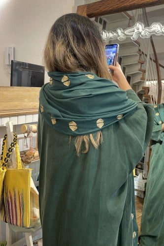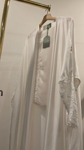 عباية صيفية مريحة بخامة أنيقة وناعمة على البشرة بالإضافة إلى طرحة مموجة باللونين السماوي والبيج