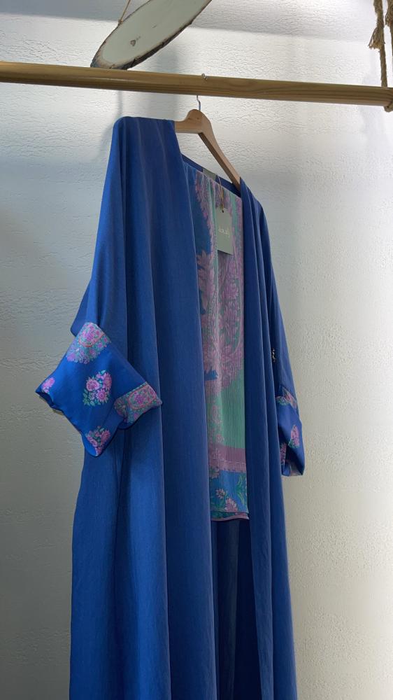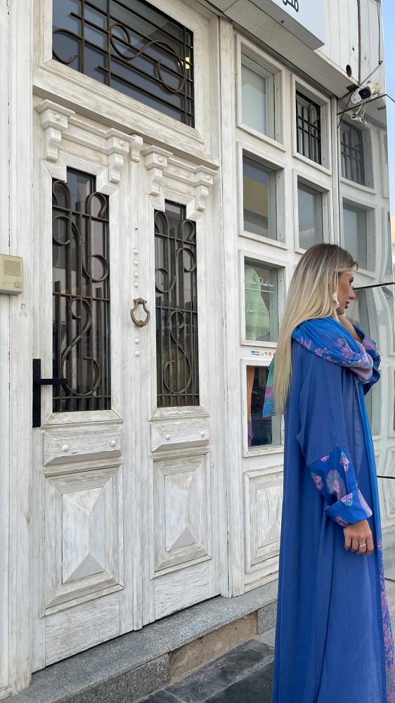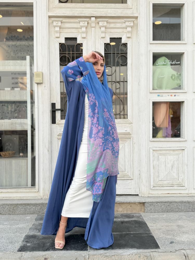 عباية بليند بأكمام وطرحة مشجرة - أزرق فاتح