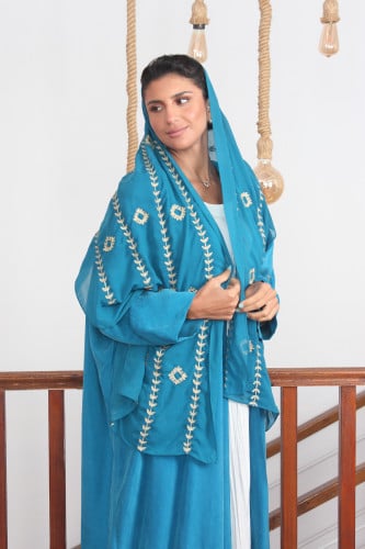 عباية كوبرو بطرحة تطريز تولة- فيروزي