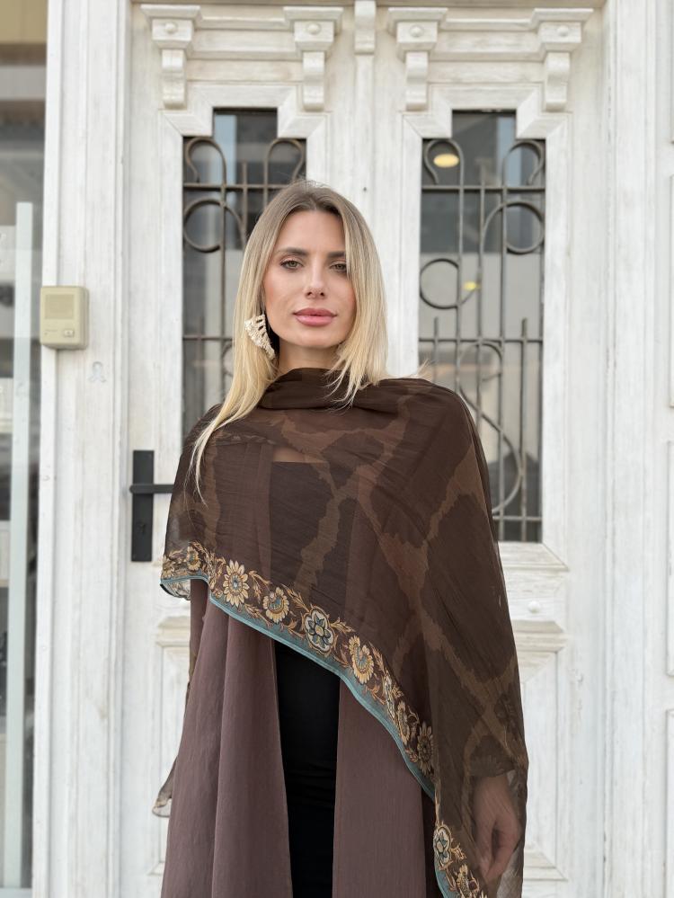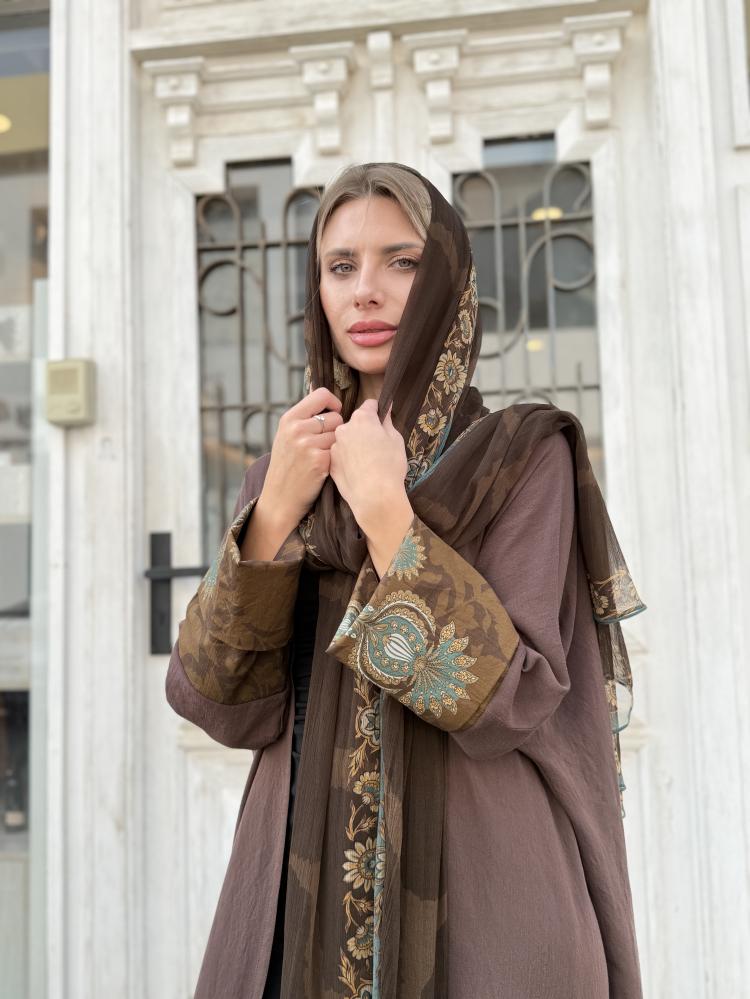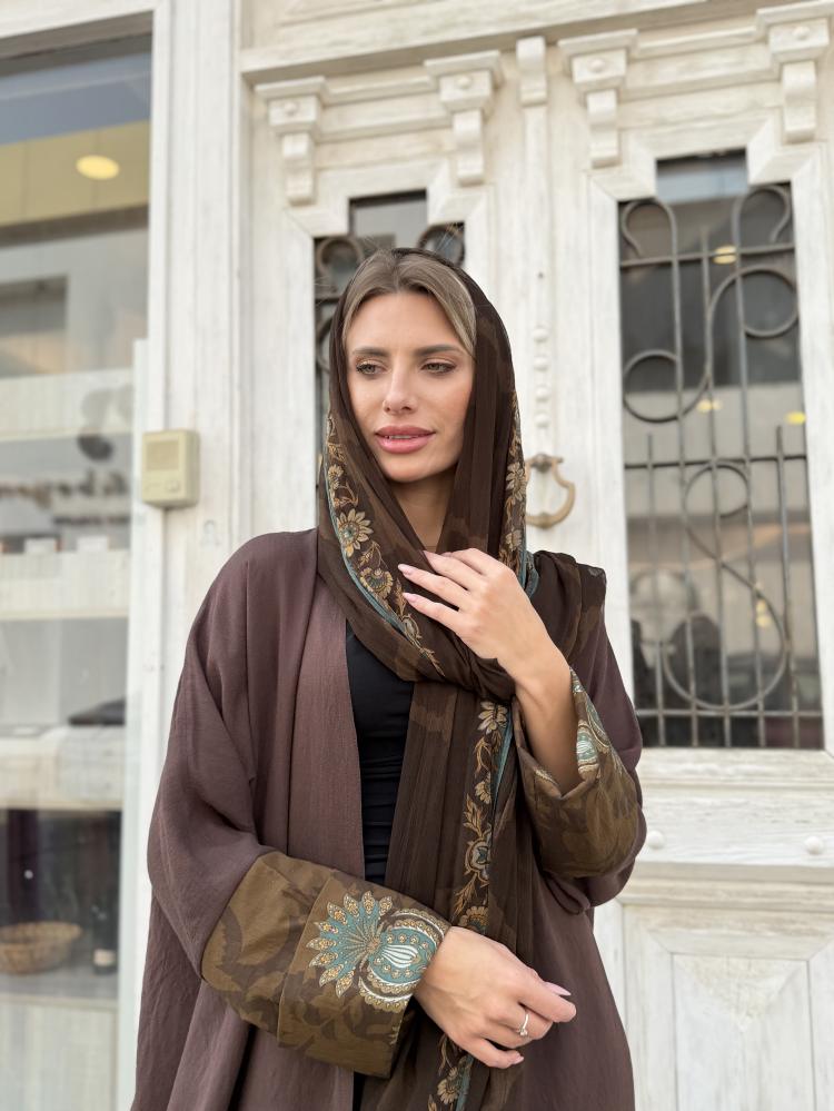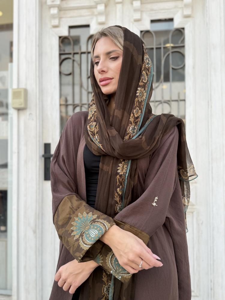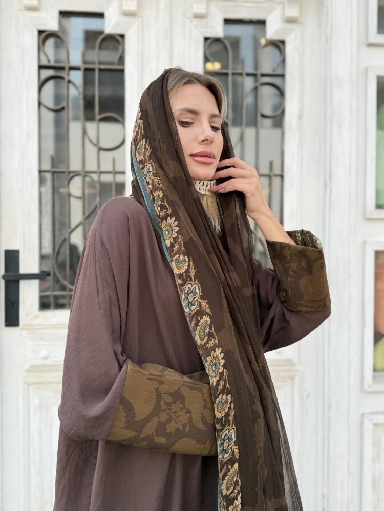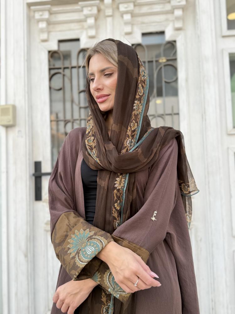 عباية بليند بأكمام وطرحة مشجرة - بني