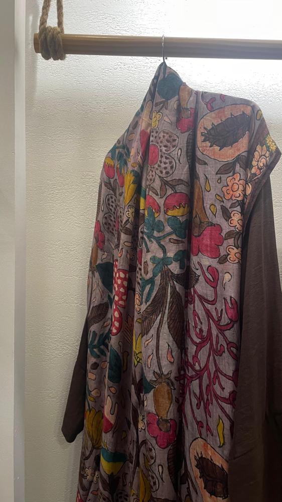 عباية كتان بشت مزينة بأطراف ذهبي -بني