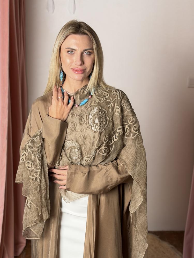 عباية كوبرو - طرحة اورجانزا مطرزة - زيتي