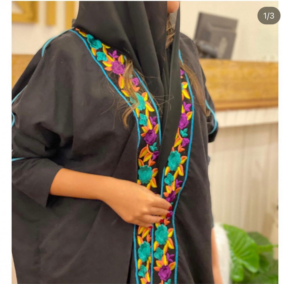 عباية سوداء بأكمام خضراء موردة