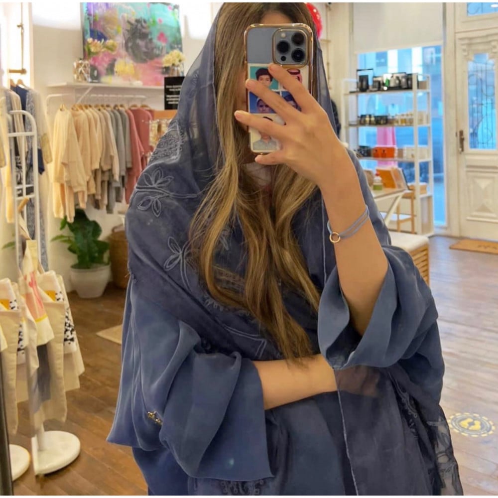عباية حرير كوبرو - طرحة اورجانزا مطرز - كحلي