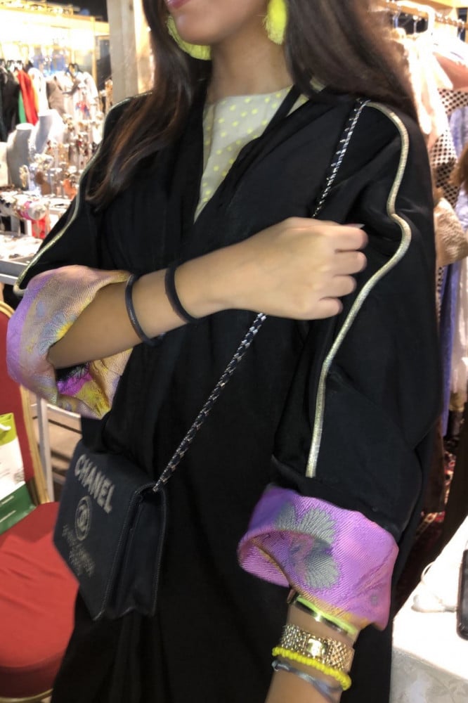 عباية بليند طرحة تطريز قط عسيري- أسود