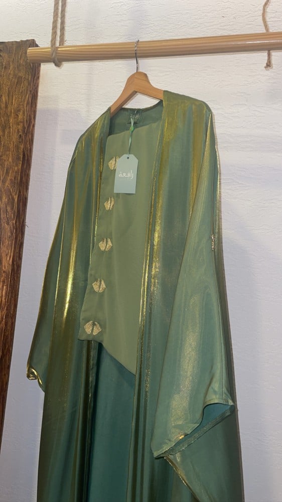 عباية بليند بطرحة منقطة - أخضر فاتح