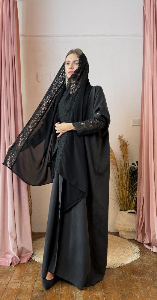 عباية كوبرو طرحة تطريز هندسي - أخضر