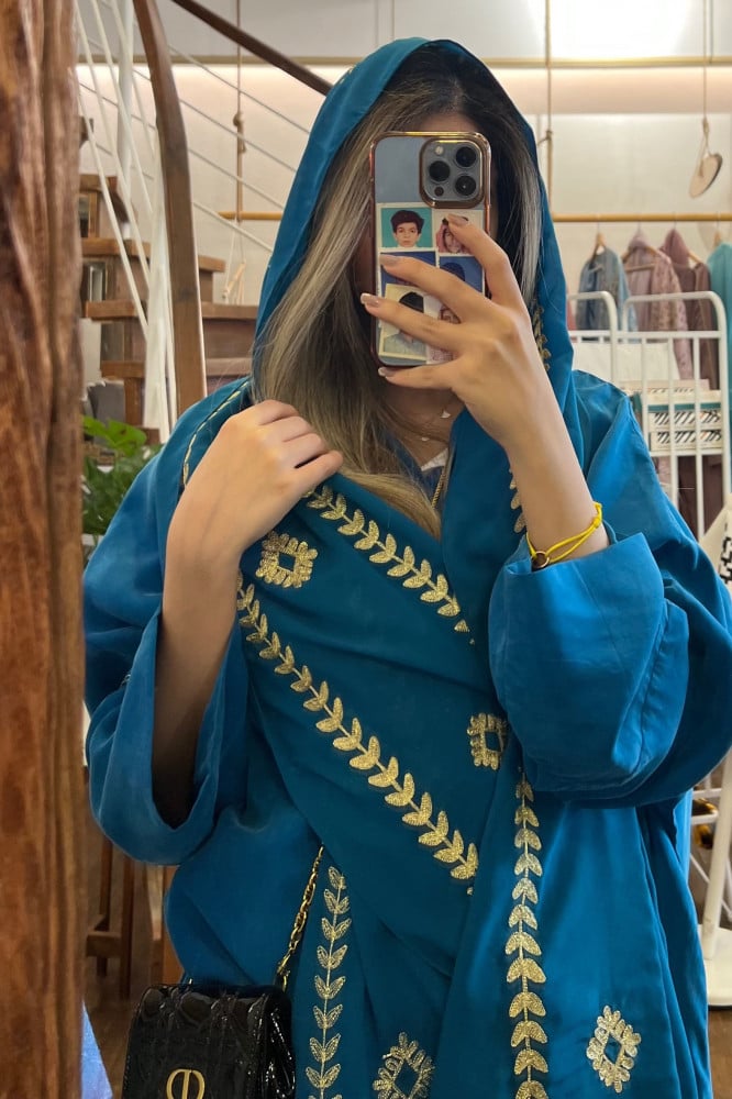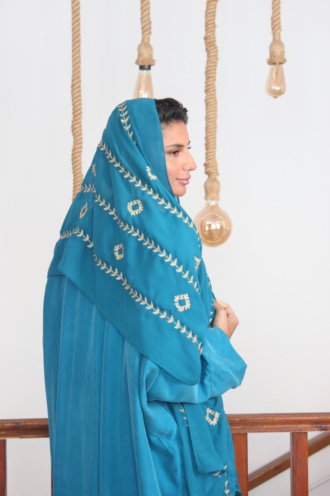 عباية كوبرو بطرحة تطريز تولة- فيروزي