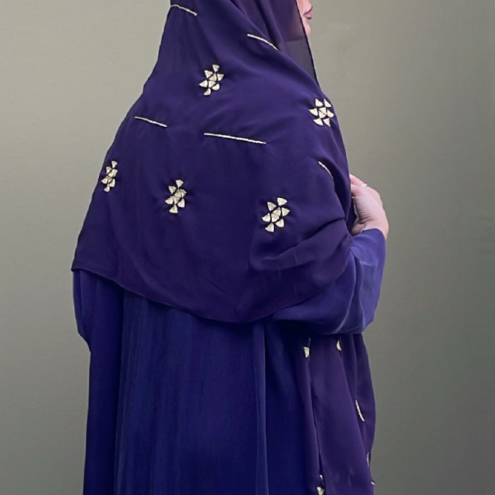 عباية مخمل خفيف - طرحة تطريز يدوي سدو - كحلي