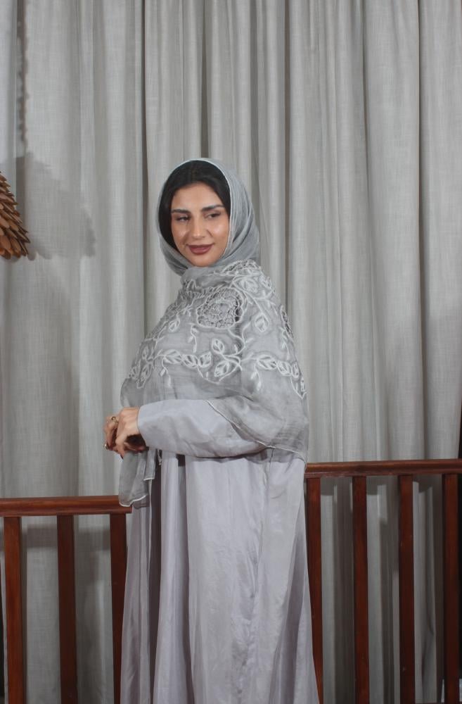عباية كوبرو طرحة مطرزة- رمادي فاتح
