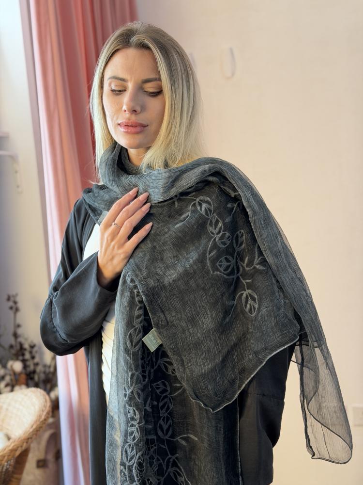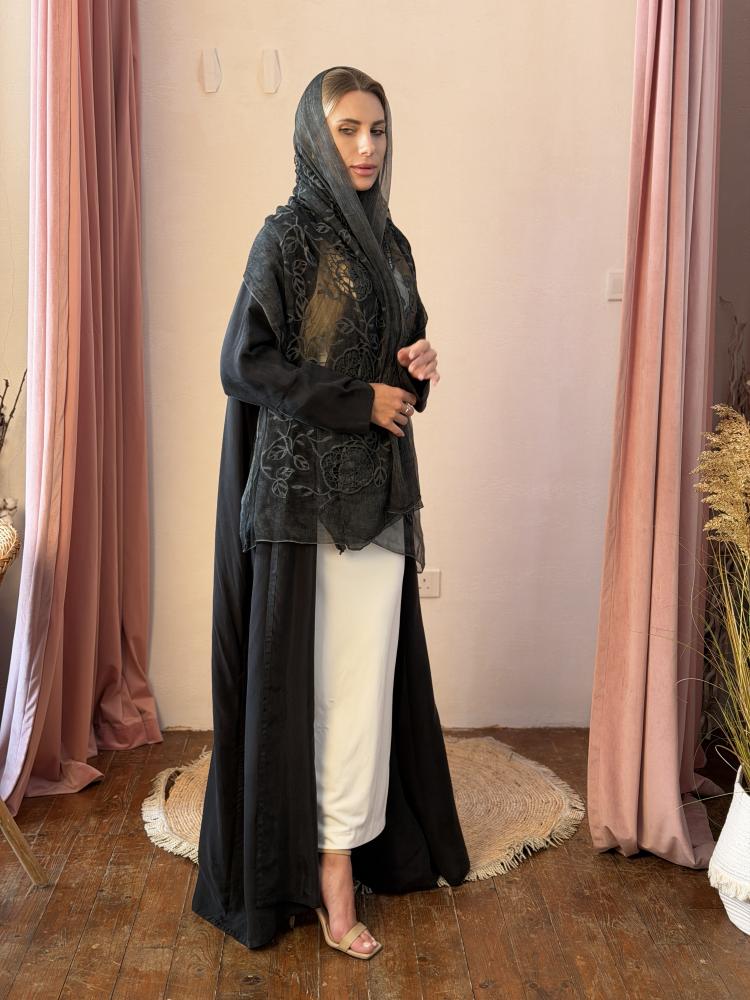 عباية كوبرو طرحة مطرزة سدو - رصاصي