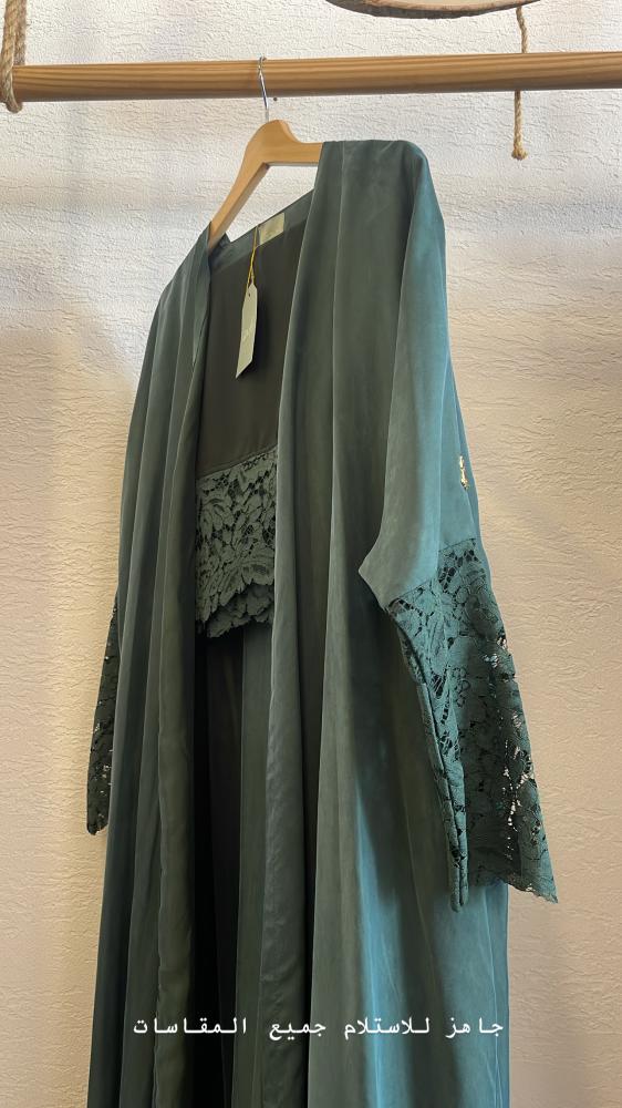 عباية كوبرى بأطراف دانتيل - أخضر
