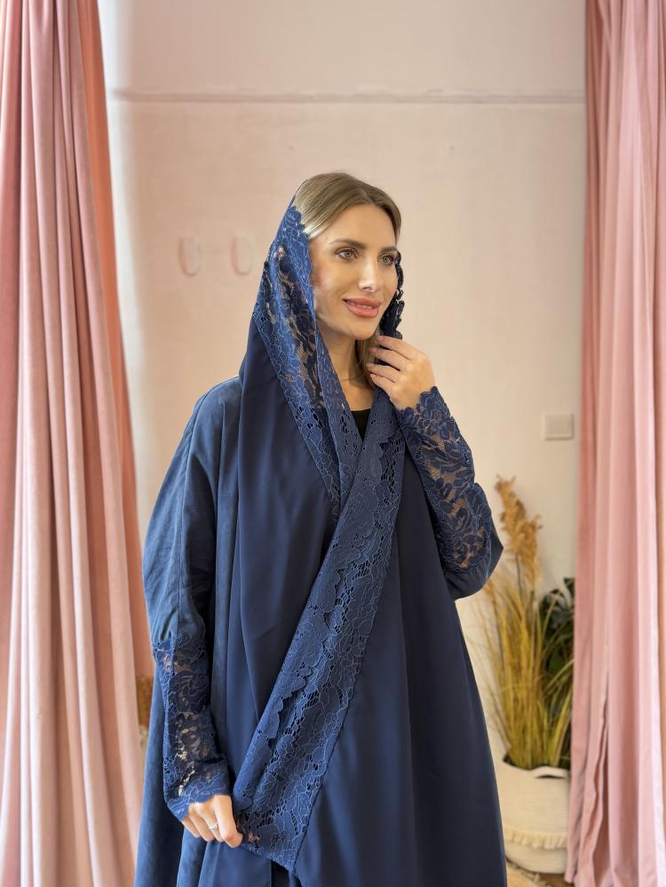 عباية مخمل خفيف - طرحة تطريز يدوي سدو - كحلي
