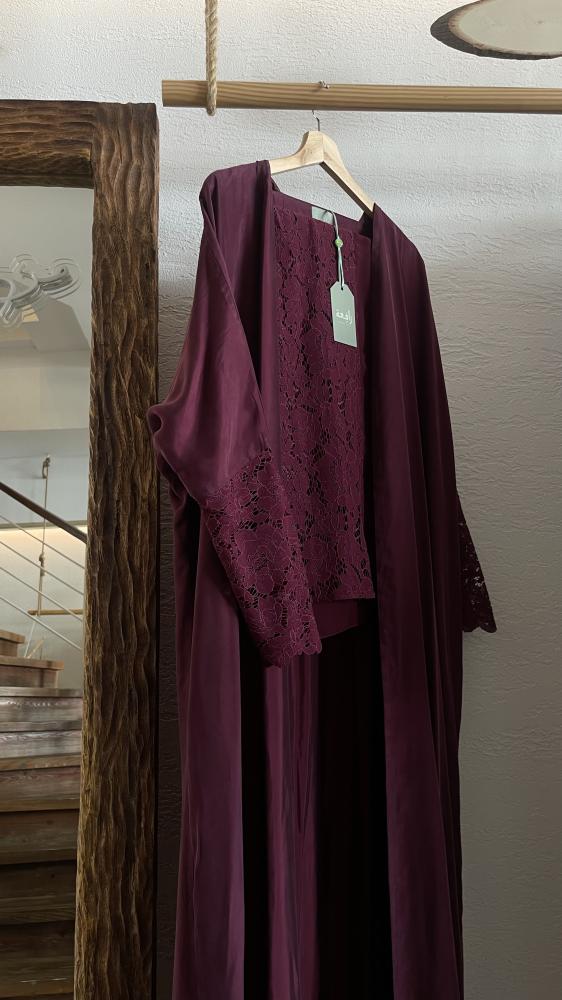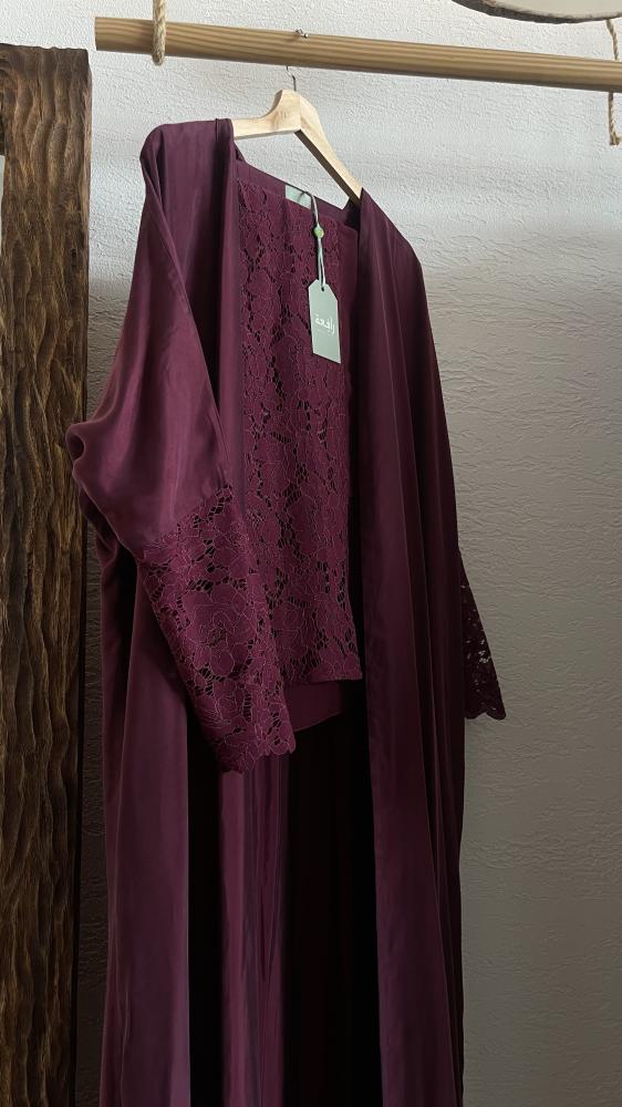 عباية مخمل منسدل بتطريز بشت فضي - وردي غامق