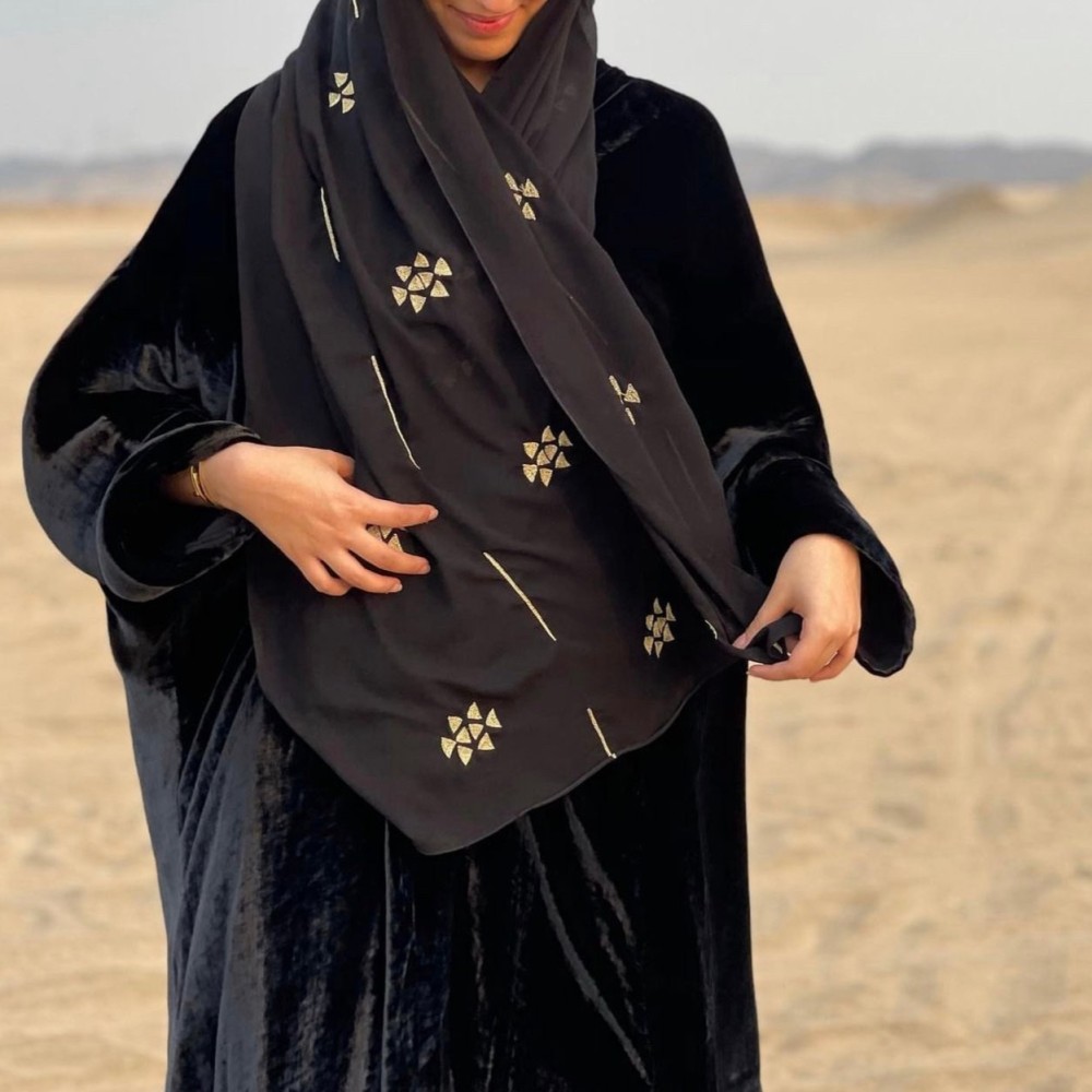 عباية مخمل طرحة سدو - أسود
