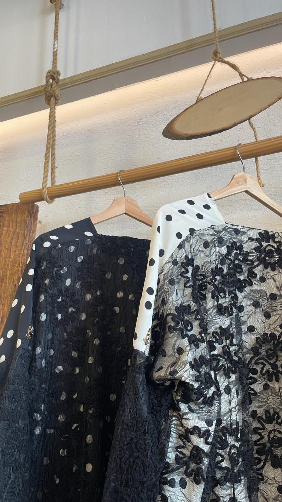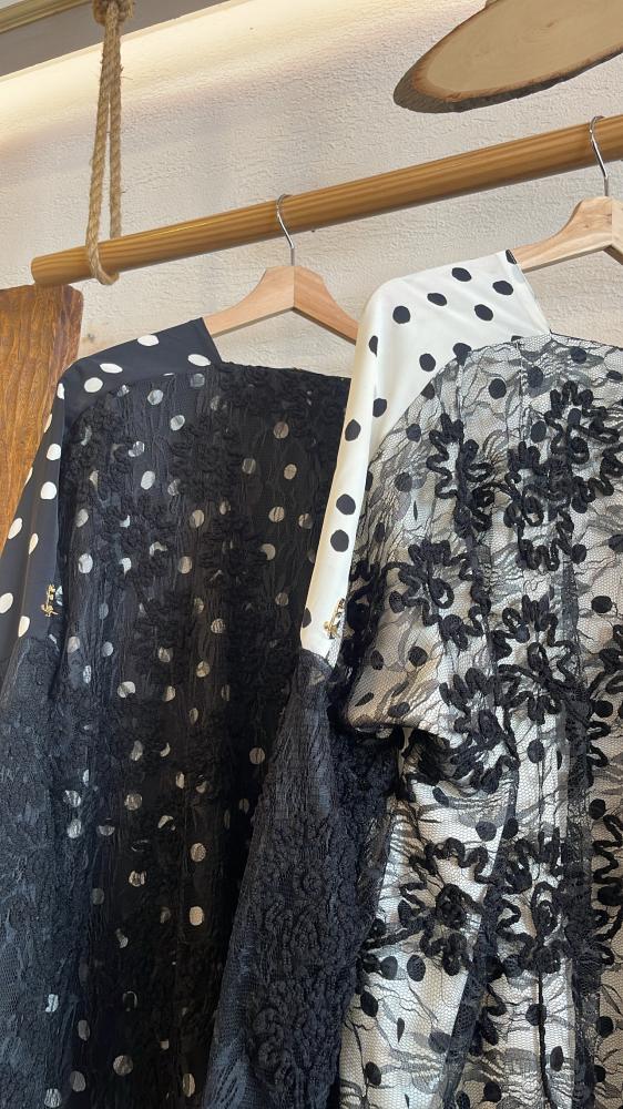عباية مخمل خفيف بطرحة تطريز سدو - اوف وايت