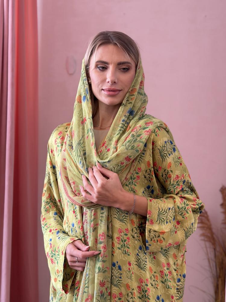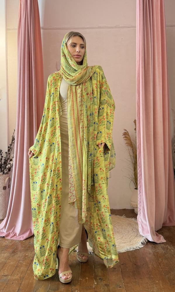 عباية شيفون مطرز - أخضر فاتح