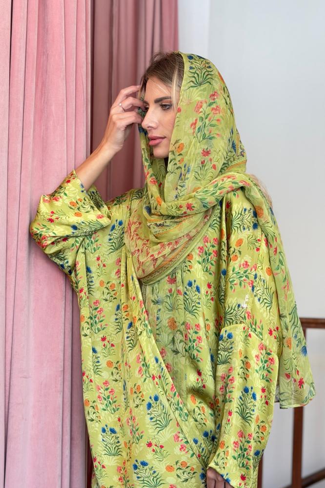 عباية كوبرو طرحة تطريز سدو - أخضر فاتح